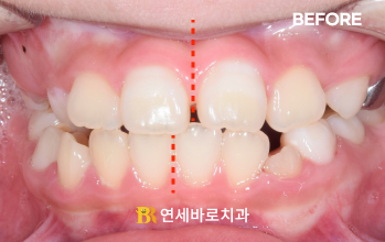 [영구치 맹출장애 케이스] 송곳니 맹출공간 소실되고 배열이 한쪽으로 쏠려서 중심선이 불일치하여 인비절라인 퍼스트로 맹출공간 확보 및 치열을 개선했습니다