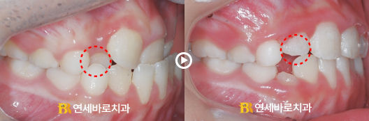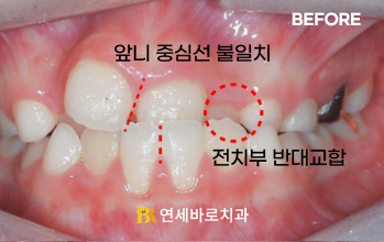 [앞니가 거꾸로 물리는 반대교합 케이스] 골격 및 유전요인 등 선천성 원인이 발견되지 않아 교정장치를 이용해 개선하였습니다