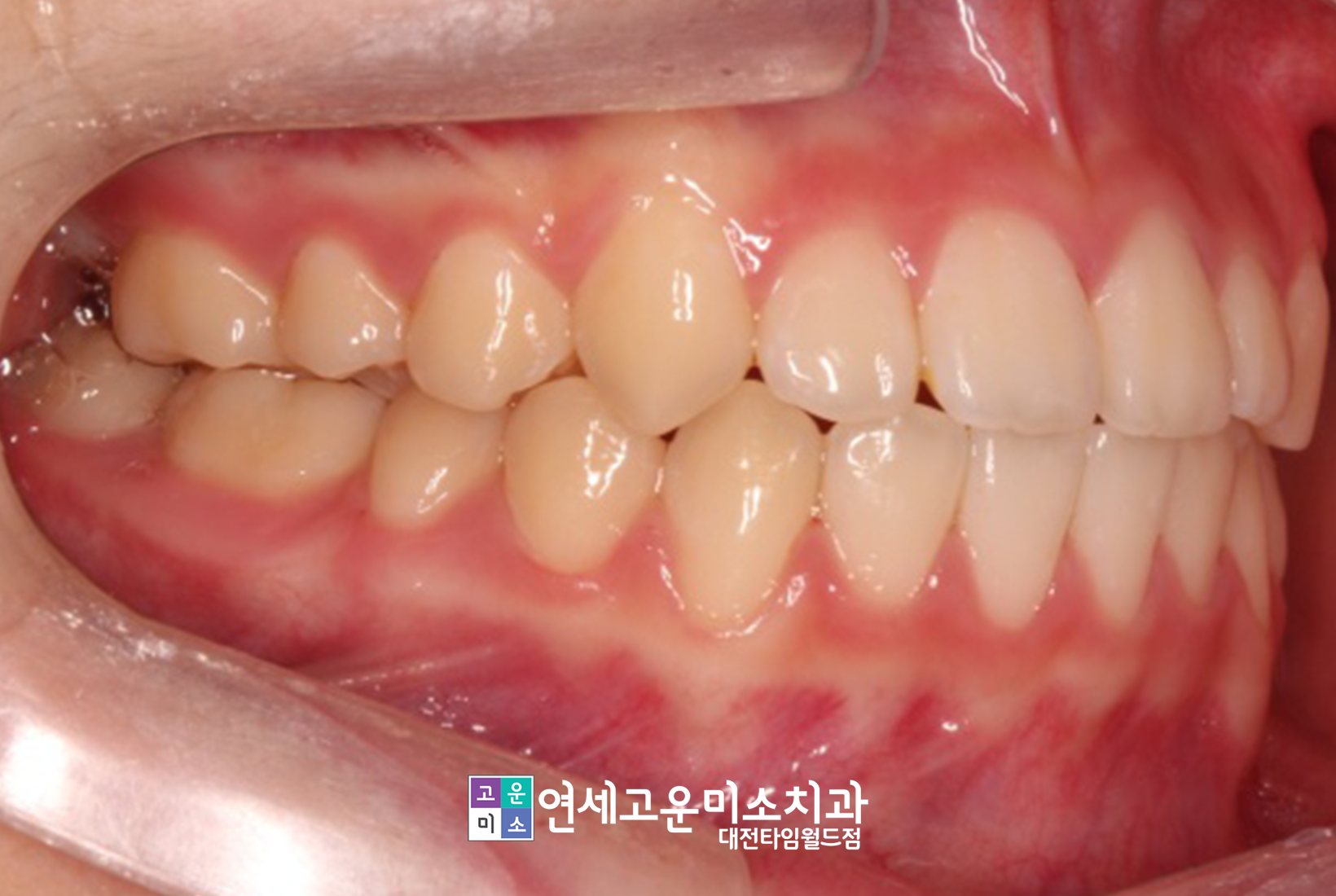 앞니 전체가 거꾸로 물리는 경우라면