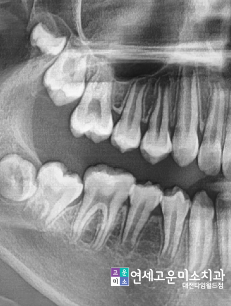 왼쪽 위에 사진을 보시면 윗니 어금니가