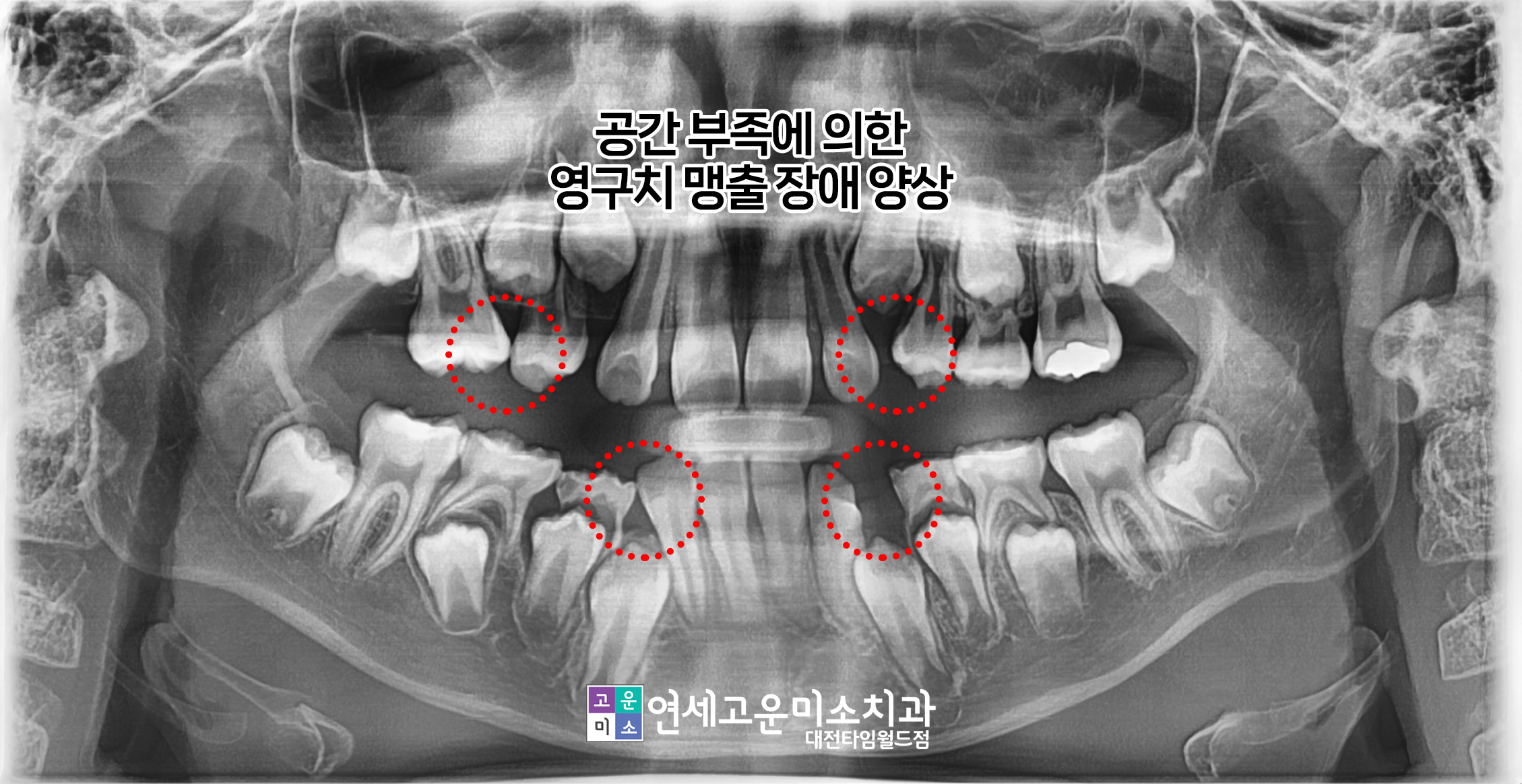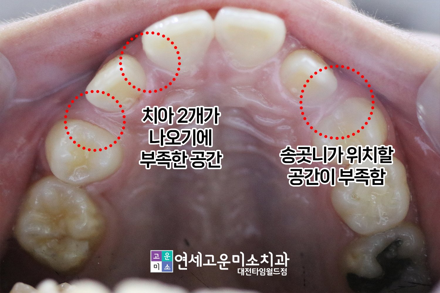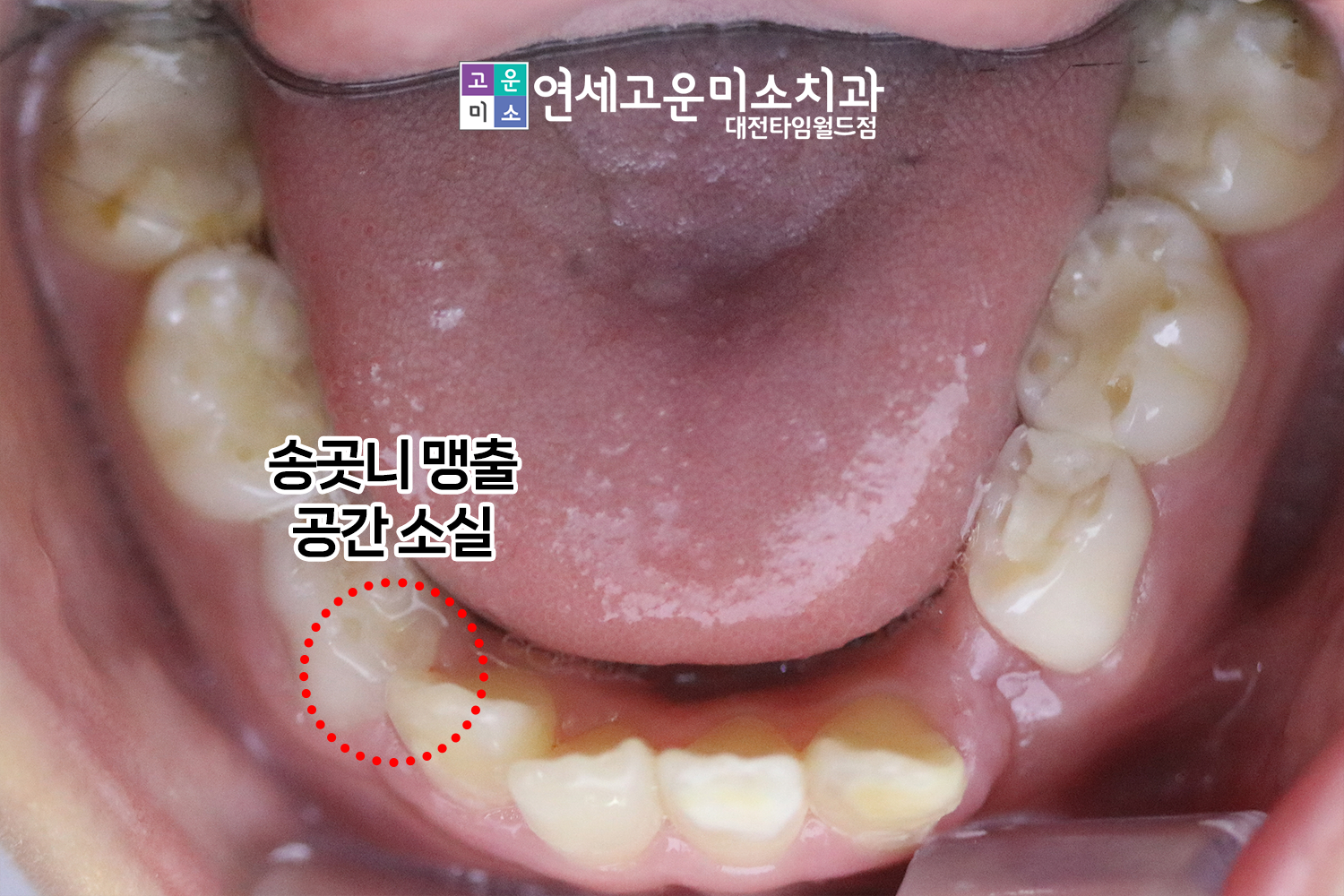 동그라미 친 곳을 보면 영구치가 나올 공간이