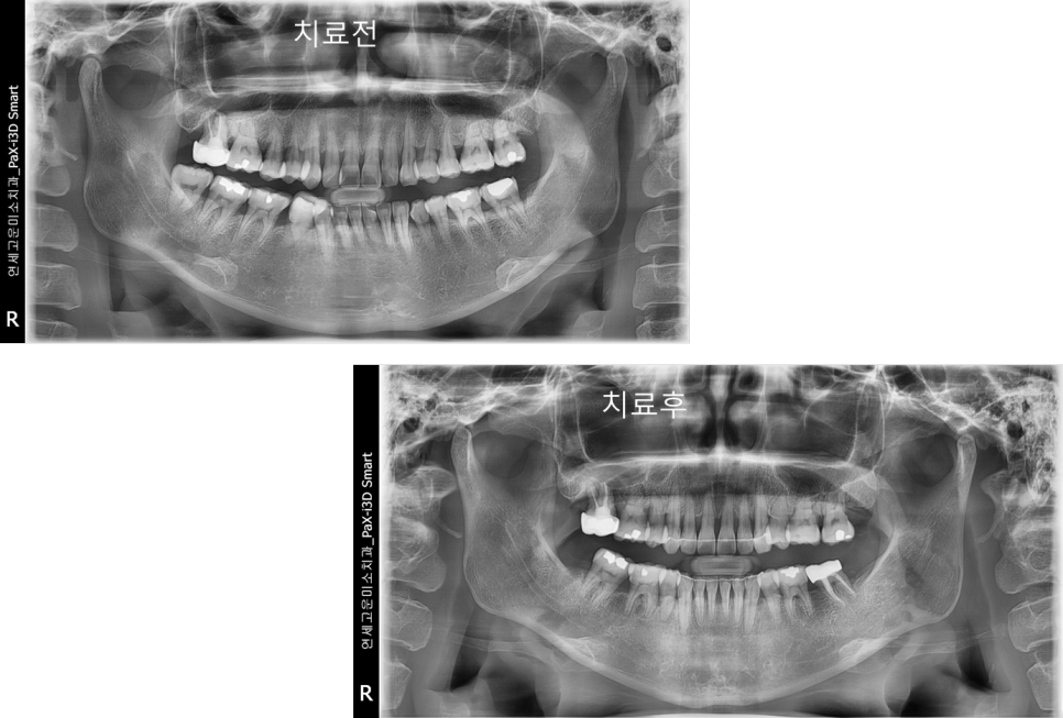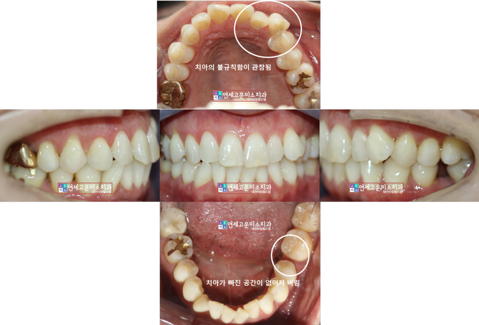 덧니와 왼쪽 아래 치아 상실 후 공간이 없어져서