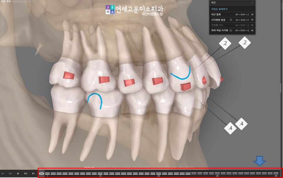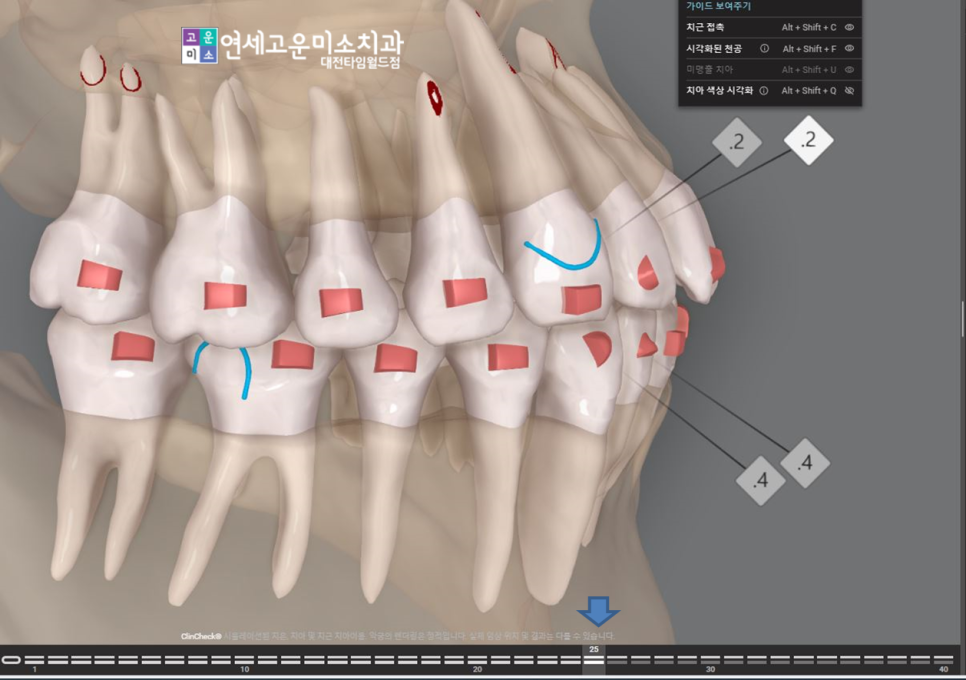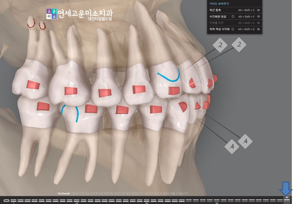 치아 이동을 3D로 단계별로 해옵니다.