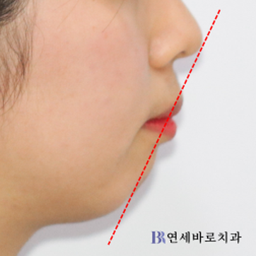 무턱에 의한 돌출입 양상을 보이며,