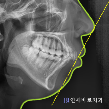 상악 치열이 더 나와 보임)