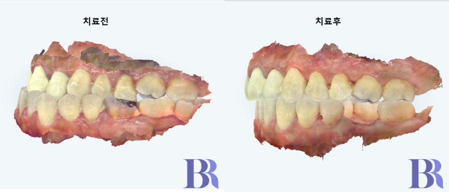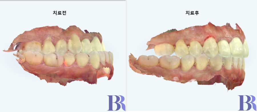 치료 전후 우측 모습: 반대교합이 훌륭하게 해결
