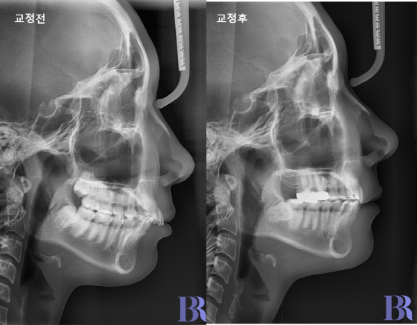 편측발치 교정 : 교정 전후 옆모습입니다.