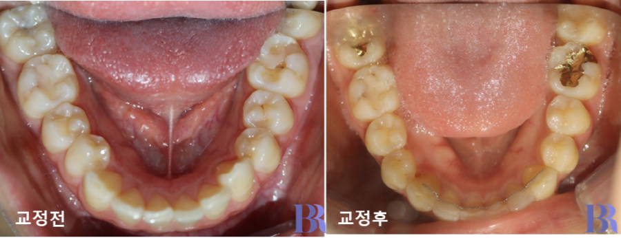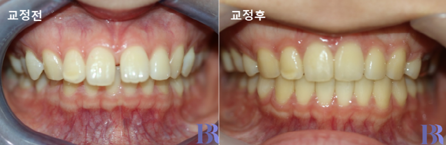 발치교정 케이스 : 윗니 악궁 전후 모습,