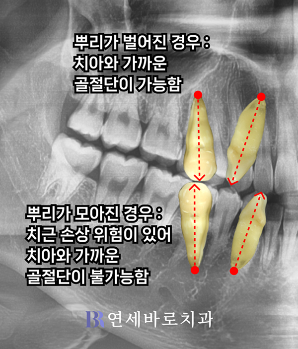 치아와 가깝게 골절단이