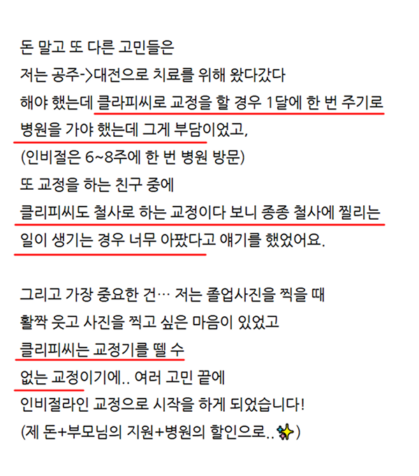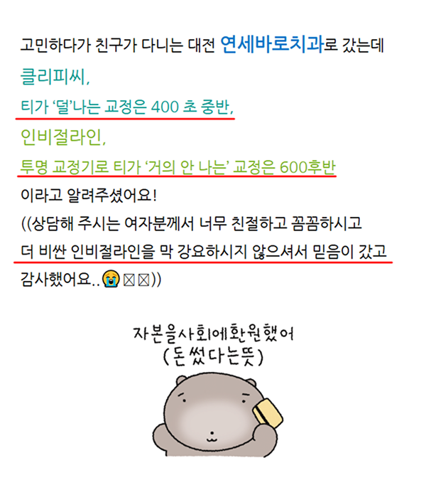 인비절라인 교정이 아닌데도