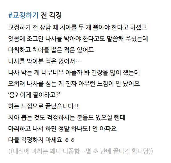 | 이전글 | 카페에 올라온 인비절라인 환자분의 리얼 후기 2026.02.06 |